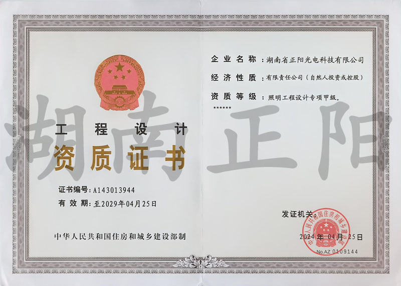 湖南省正陽光電科技有限公司是一家從事亮化工程及大型燈光藝術(shù)的設(shè)計(jì)、制作、安裝和維護(hù)于一體的專業(yè)化公司。公司資質(zhì)齊全、管理嚴(yán)謹(jǐn)、技術(shù)先進(jìn)、實(shí)力雄厚,取得了城市及道路照明工程專業(yè)承包壹級(jí)資質(zhì)、照明工程設(shè)計(jì)專項(xiàng)甲級(jí)資質(zhì)、機(jī)電工程施工總承包貳級(jí)資質(zhì)、施工勞務(wù)等資質(zhì)、國(guó)家高新技術(shù)企業(yè)、國(guó)家“重質(zhì)量·守誠(chéng)信”示范企業(yè)。